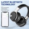 Tapela E7 Wireless Active Noise Cancelling Headphones, Over Ear Bluetooth Headphones with Microphone, 28H Playtime, Deep Bass, Comfortable Protein Ear Cups, for Travel, Home Office – Titanium Black